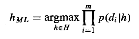 그리고 만약 모델 f가 선형이라면 위와 같은 그래프를 그릴 수 있고 hML라고 구한 점선은 noisy한 data를 가지고 ML solution을 구한 선이 되겠다. 확률을 구할때, continuous한 경우에는 pdf를 이용해야하지만 그냥 확률 값으로 쓸 수있다고 가정한다. ML은 아래와 같이 구할 수 있다.