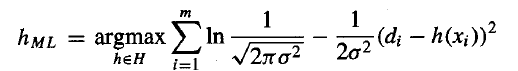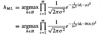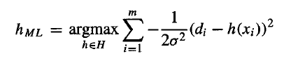 여기서 error ei가 정규분포(zero mean gaussian)를 따른다고 하자. 그러면 p(di|h)를 normal distribution에 관해 정리할 수 있다.