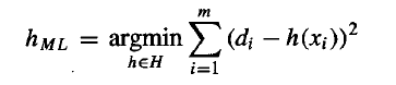 이번에는 특정 learning algorithm이 명시적으로 베이즈룰을 쓰거나 확률계산을 하지 않아도, MAP가정의 의미를 갖는다는 것을 보이도록 하겠다. 아까는 계속 hypothesis를 discrete한 클래스의 추정처럼 얘기했는데 이번엔 continuous한 값을 추정한다고 해보자. 이런 continuous한 값에 대한 문제들은 neural net이나 linear regression, 다항식커브의 fitting같은 다양한 학습알고리즘에서 사용된다.