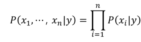 이와 같이 각각의 feature에 대해 확률을 구해서 conditional independence를 통해 곱으로 표현해보면,