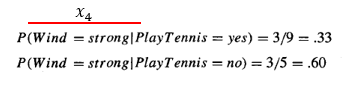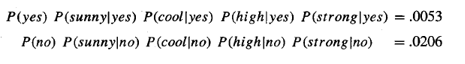 이 확률을 최대로 하는 클래스를 정해야 하기 때문에 각 확률을 비교해보면, 테니스를 안치는 것(no)의 확률이 더 크기 때문에 최종 클래스 y를 테니스 안치는 것으로 결정할 수 있다.