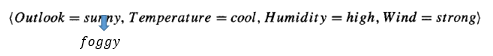 테니스를 치러갈지 말지(y) 정하는 분류 문제이다. 이 문제에 대해서 특징벡터(X)하나를 뽑아보면 다음과 같다.