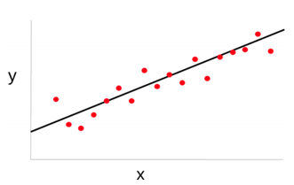 그럼 아래의 그림과 같은 빨간점의 데이터를 직선으로 표현할 수 있게 된다.