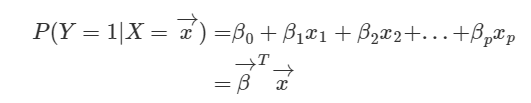 이제 logistic function과 odd를 이용해서 logistic regression을 정의해보자. 다중선형회귀의 식을 먼저 살펴보자. 설명변수x가 p개 존재할때, 식을 정의해보면 아래와 같다.