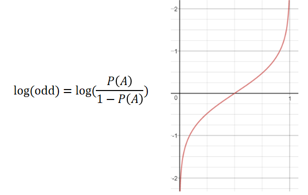 하지만 좌변은 0~1값을 가지는 것에 비해 우변은 [-∞,∞]값을 가진다. 그러므로 식을 수정할 필요가 있다. 아까 살펴봤던 odd식을 좌변에 넣어보자.