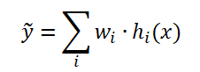 근데 사실은 데이터가 이렇게 직선형태로만 존재하지는 않을 것이다. 그렇기 때문에 이를 모델링하기 위해서 x와 y의 관계식에서 x를 어떤 h라는 함수에 통과시켜 사용할 것이다. 이게 무슨말일까... 일단 식으로 써보면,