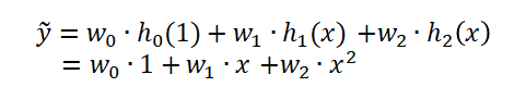 여기서 h라는 함수는 이제 basis function이라고 부를 것이다. x의 기저를 바꾸는 행위를 통해서 데이터를 여러 모양으로 표현가능하다. 만약에 우리가 polynomial(다항식) basis를 사용한다고 하자. 그러면 아래의 그림과 같이 포물선 형태의 모델을 얻을 수 있을 것이다.