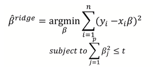 베타의 L2 norm을 어떤 범위로 제약을 주는 것이다. 그렇게 되면, 이 범위안에서의 최적의 베타를 구해야된다. 이를 라그랑주승수법으로 표현하면 아래와 같다.
