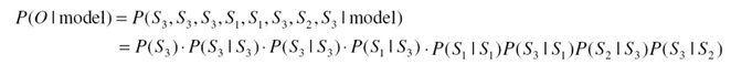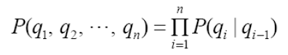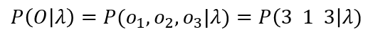 우리는 단지 과거의 관측치를 통해 오늘 날씨를 예측하고 싶은게 아니라, 미래에 어떤 관측치들이 나올지 예측하고 싶은 것이다. 이는 sequence probability를 이용해 계산할 수 있다. sequence probability를 계산하는 식은 아래와 같다.