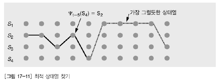 2)최적의 상태열(optimal state sequence)를 찾는 문제 → Viterbi algorithm으로 해결