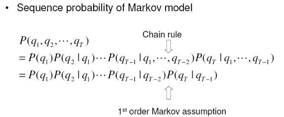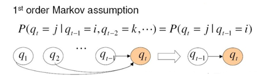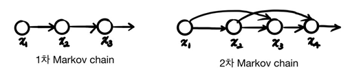 Markov model의 핵심은 현재의 observation이 바로 이전의 state에 의해서만 결정된다는 것이다. 그러므로 이전의 모든 state를 다 볼 필요 없이 이전 state만 보면 된다는 것이다. 만약 1차 마르코프모델이라면 바로이전 state만, 2차 마르코프모델이라면 두스텝 전까지 보는 것이다(영향을 받는다).