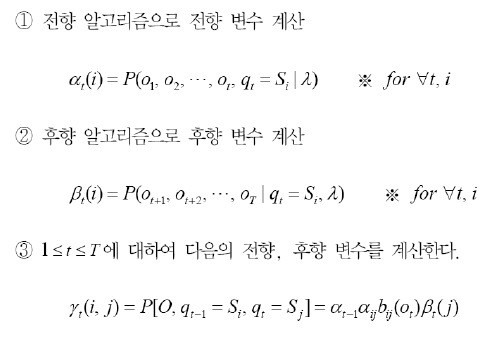 1)확률평가(probability evaluation)문제 → forward(전향)과 backward(후향)알고리즘으로 해결