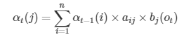 여기서 이 at(j)가 forward probability를 뜻한다. 이때 t가 현재 time step이고, j가 j번째 상태를 뜻한다.