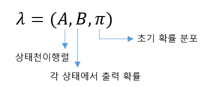 여기서 A는 state transition probability B는 emission probability이다.