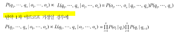 이를 최대화 하는 상태 qt를 찾아서 모든 t에 대해 모으면 최적의 상태열을 구할 수 있다.