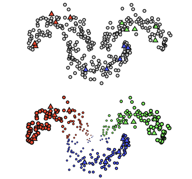 Graph-based semi-supervised learning은 unlabeled data의 label을 알고싶다는 것에서 출발한다. 이는 앞선 방법들이 unlabeled data로 labeled data의 예측성능을 올리고 싶다는 것과는 다른 목표를 가진다. 대표적인 방법으로는 graph의 노드로 {labeled, unlabeled} 데이터를 표현하고 노드들 사이의 유사도를 기준으로 유사도 가중치가 높은 이웃으로 건너 건너 label을 추정하는 label propagation이 있다.