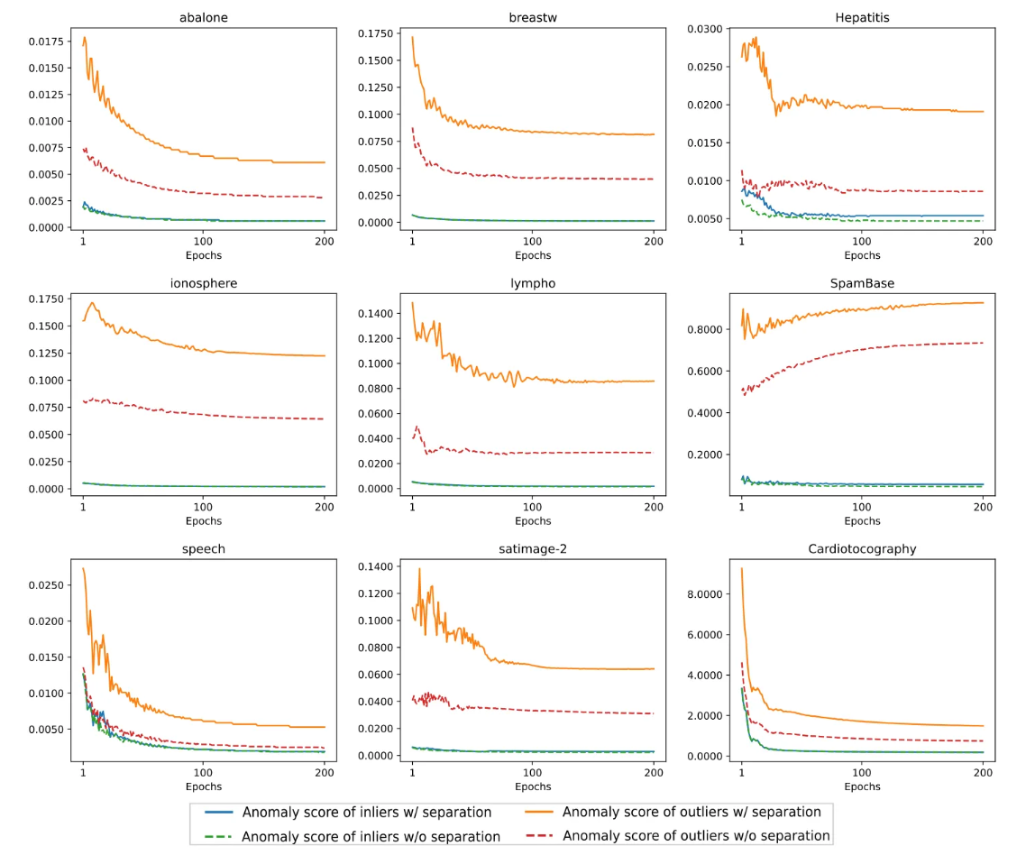 Separation loss를 쓰기 전과 후의 anomaly score격차가 커진 것을 확인할 수 있다.