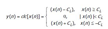 CL은 clipping threshold이다. 일반적으로 CL 는 대략 음성신호의 최대 magintude의 30% 정도로 설정한다. 아래의 그래프를 통해 Center clipped된 신호는 신호의 절대값의 threshold magnitude 이상의 신호만 남게 되어 신호의 자잘한 특성이 제거되는 모습을 볼 수 있다.