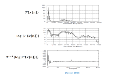 따라서, DFT를 수행하여 음성신호를 주파수영역으로 변환한 뒤, 그 변환된 신호에 log값을 취해주면 빠른 신호와 느린 신호가 덧셈의 형태로 존재하게 되며, 이 신호를 다시 IDFT해주면 느린신호는 time축의 낮은 영역에 존재하며 빠른 신호는 time축의 높은 영역에 존재한다.(시간축과 주파수축의 duality성질 때문에)