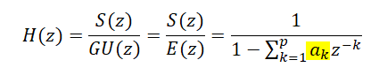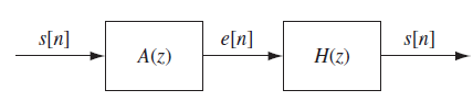 Error를 excitation으로 근사하였기 때문에 위와같이 나타낼 수 있고, H(z)는 처음에 음성모델을 토대로 정의한 바 있으므로 A(z)는 H(z)의 역수로 볼 수 있다.