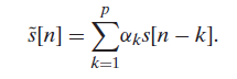 원 신호 s[n]은 p개의 이전 샘플들의 선형결합으로 추정할 수 있다. 하지만 이 추정도 에러가 존재할 수 있기 때문에, 뒤에 predictive error signal e[n]을 더해서 표현할 수 있다. 여기서, error는 excitation signal에 gain을 곱한 값으로 표현될 수 있다.