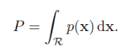 그것을 살펴보기에 앞서 K nearest neighbor의 다른 용도를 한번 살펴 보겠다. (classification문제에 쓰이는 nearest neighbor만 알고싶으면 여기는 스킵해도 무방하겠다.) 사실 nearest neighbor는 커널밀도추정과 함께 비매개변수적인 밀도추정에도 쓰인다. 유클리디안 D차원 공간의 알려지지 않은 확률밀도 p(x)로부터 관측값들을 추출했고 이 관측값들을 바탕으로 p(x)를 추정하려한다. 아주 작은 지역R을 바탕으로 이 구역의 확률질량은 p(x)를 R지역에 대해 적분하여 나타낼 수 있다.