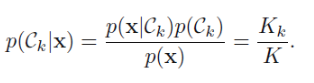 이를 이용해서 분류문제도 해결할 수 있게 되었는데 이는 밀도를 추정한 후 베이지안정리를 이용하면 된다. 각 클래스 Ck에 대해 NK 개의 데이터 포인트를 가지는 데이터 집합을 가정해보자.