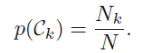 각 클래스의 밀도는 아래와 같이 추정할 수 있다.(사전밀도)