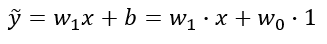 이제 이 와중에 가장 간단한! linear regression을 알아보겠다. linear라는 말에도 나타나듯이 선형으로 모델의 관계식을 모델링하겠다는 뜻이다. 무엇이 어떻게 선형이라는 것인지 알아보도록 하자. 제일제일 간단한 모델을 살펴보겠다. 아래와 같이 우리는 x라는 1-dimension의 데이터에 가중치w를 곱하고 bias를 표현하기 위해 w0을 추가했다.