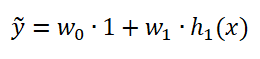 근데 사실은 데이터가 이렇게 직선형태로만 존재하지는 않을 것이다. 그렇기 때문에 이를 모델링하기 위해서 x와 y의 관계식에서 x를 어떤 h라는 함수에 통과시켜 사용할 것이다. 이게 무슨말일까... 일단 식으로 써보면,