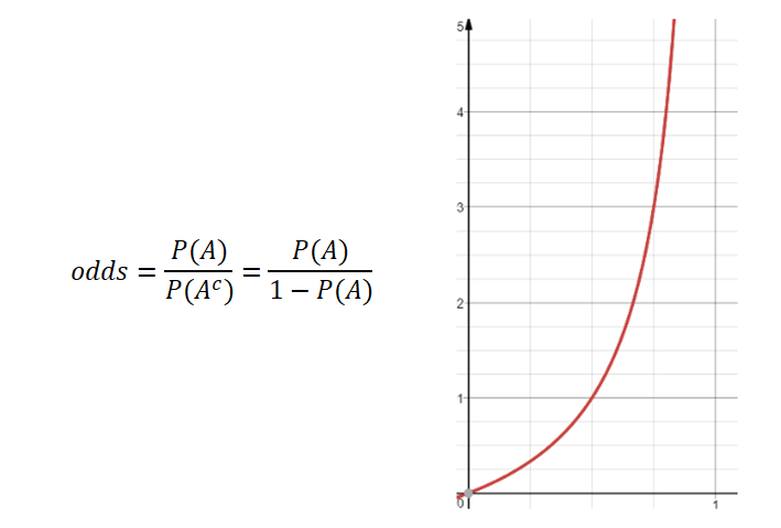 A가 발생할 확률이 0이 되면 odd값은 0의 값을 가질 것이다. 그래서 그래프가 위와 같이 나타난다.