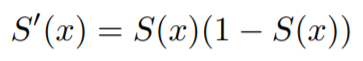 이 함수는 x값으로는 어떤 값이든 갖을 수 있지만 y값은 0~1사이만 나오게 된다. 0~1사이라고 하면 하나 떠오르는 게 있다... 그것은 확률!!! 이 함수는 확률밀도함수의 요건을 충족시킨다. 그리고 연속적이고 smooth한 것이 미분하기도 딱 좋다. 그리고 mirror symmetric한 것이 여러 application에 적용하기 좋게 생겼다. 그리고 미분도 간편한데, 미분연산 필요없이, 아래의 식으로 대체할 수 있다.