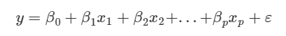 이제 logistic function과 odd를 이용해서 logistic regression을 정의해보자. 다중선형회귀의 식을 먼저 살펴보자. 설명변수x가 p개 존재할때, 식을 정의해보면 아래와 같다.